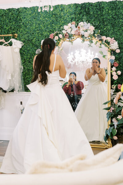 We recommend bringing up to four guests who you know will be supportive and helpful throughout your dress-shopping journey. If you're concerned that a certain guest might make the experience a bit less enjoyable, consider planning a dress reveal appointment with them once your gown arrives. This way, you can have the best of both worlds—a positive shopping experience and a special reveal moment!